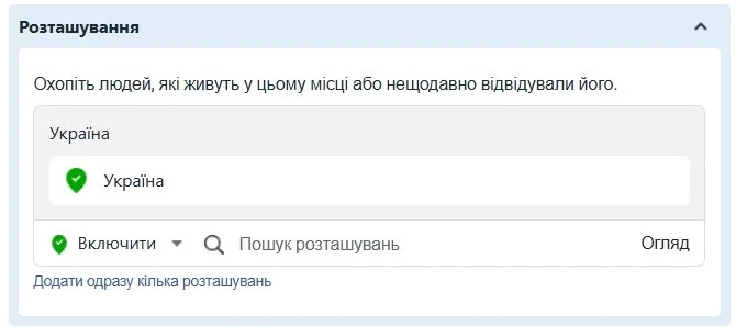 Це розширення залишатиметься в цільовій країні (воно не буде охоплювати людей у Польщі, які планують подорожувати, наприклад, до Дніпра). Але якщо позначено, ви охопите людей, які не проживають у вибраному вами місці або нещодавно там не були.